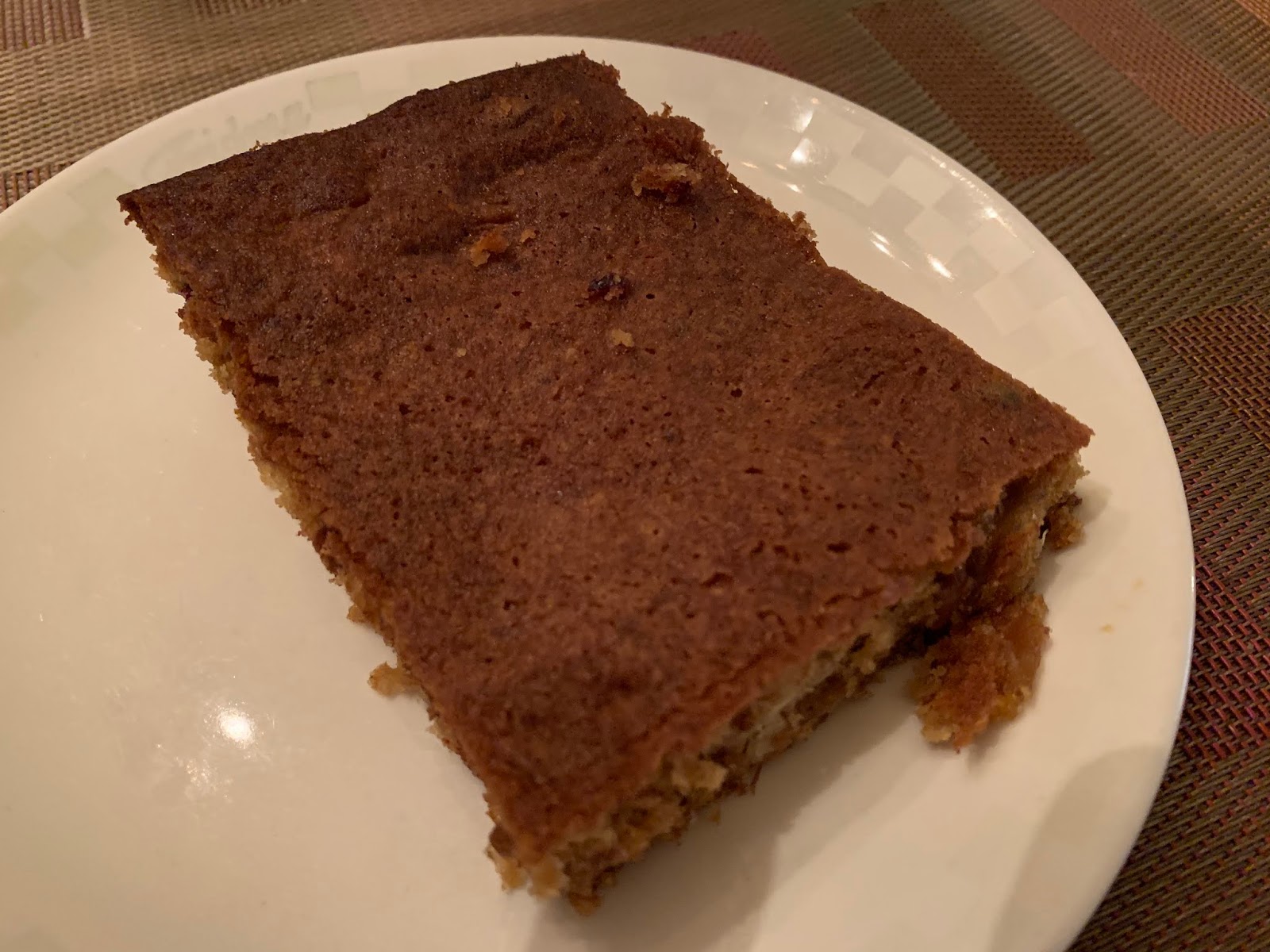 Add the flour mixture and date mixture, and mix gently on low just until incorporated. Remove the bowl from the mixer, and use a spatula to fold in the walnuts. Transfer the mixture to the parchment-lined sheet pan, and use an offset spatula to spread it in an even layer, pushing it into the edges and corners and smoothing the surface. Bake until brown and set, about 45 minutes.