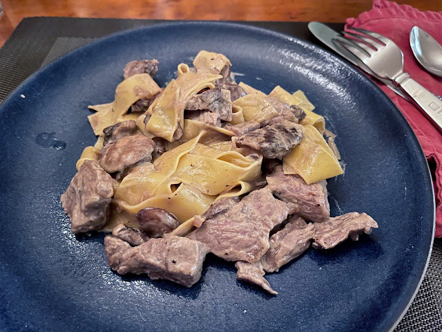 Another Prime Rib, another Beef Stroganoff. What is better use of leftover Prime Rib then making Beef Stroganoff? We love it! You can find the recipe on our blog of: December 1, 2020. Click the date to get the recipe.